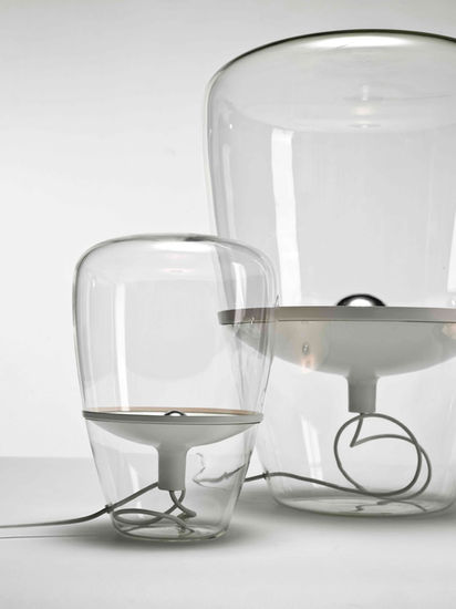 バルーンは熱気球を思わせるシンプルなフォルムの照明コレクション。上下二つのガラスを美しくつなぎ合わせることで、ガラスの中に金属反射板が浮遊しているかのように見せています。明かりを消している間も、風格あるその姿は彫刻のような存在感を示します。最大サイズのガラスシェードは、吹きガラス作りにおいて特に高度な技術を要します。バルーンはボヘミアンガラス職人の抜きん出た熟練さとクラフトマンシップの表れであり、BROKISがブランドを形成するなかで重要な柱の一つとなっています。サイズは3種類からお選びいただけます。