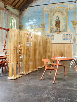 3~5人掛けのコンパクトなピクニックテーブル「Virus」(ウイルス)は 無菌室のような殺風景な場所にも生き生きとした表情を与えてくれます。